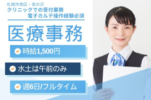 【札幌市西区/ひろ内科循環器科クリニック】水・土は午前のみ◎経験を活かせる医療事務★高時給1,500円×フルタイム×車通勤OK!