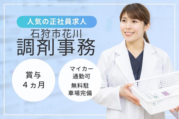 【石狩市花川】経験必須!月給19万円+賞与4ヶ月/日祝休み/週休2日制/調剤薬局での調剤事務/正社員求人