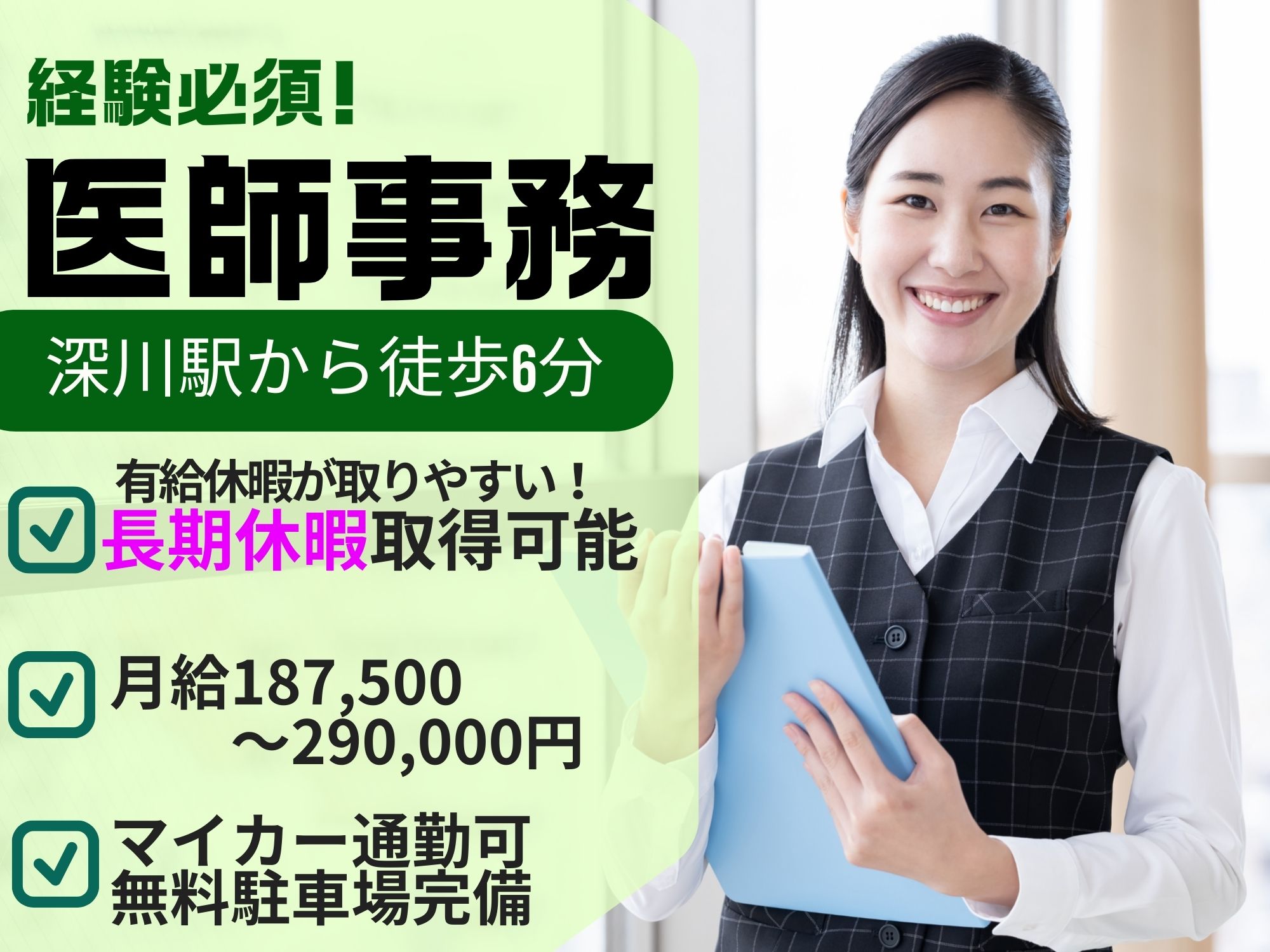 【深川市】賞与2ヵ月/長期休暇取得可能+福利厚生充実♪/歯科クリニックの医師事務/ 経験必須!