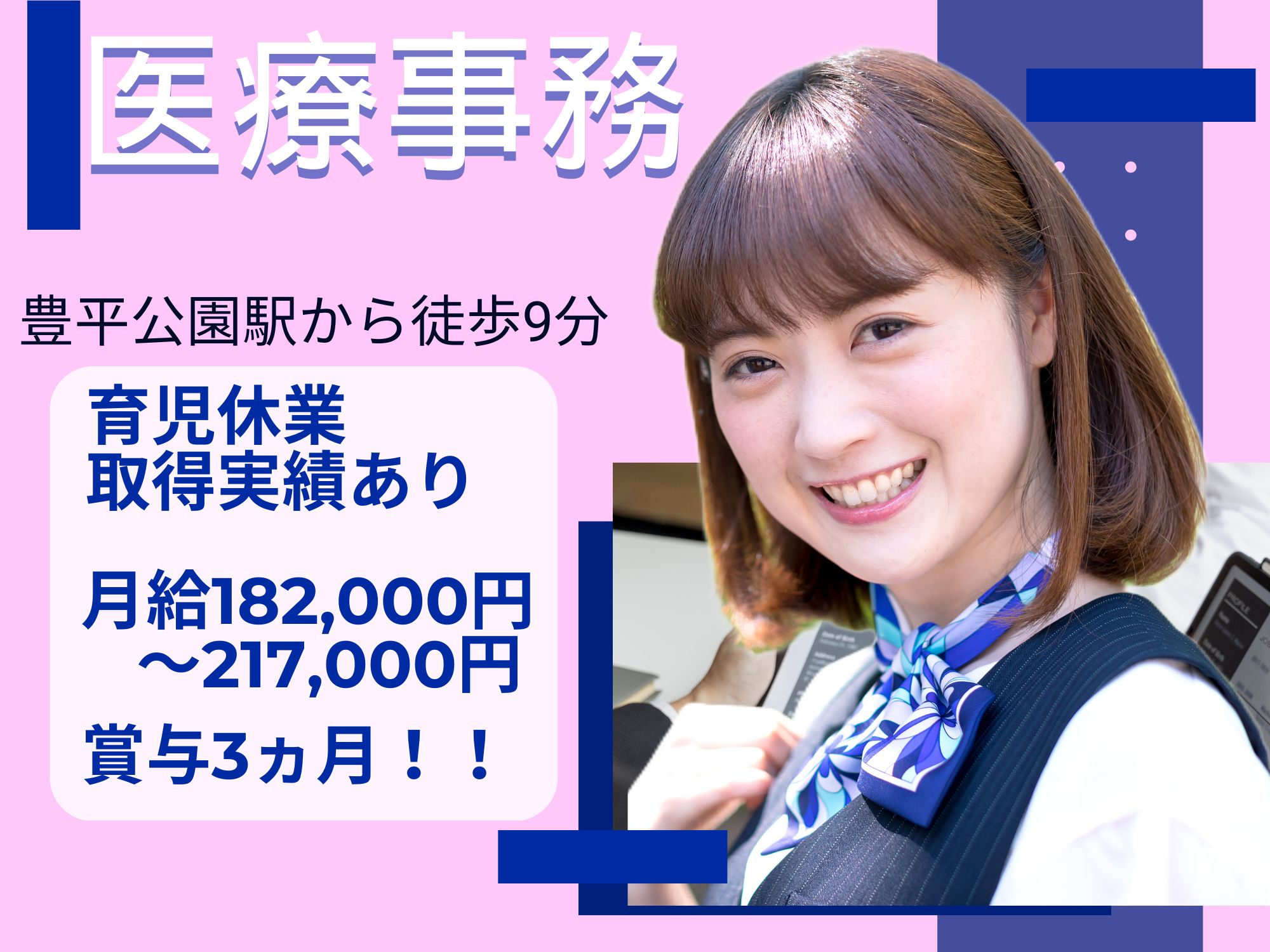 【豊平公園駅から徒歩9分】月給182,000円~217,000円/賞与3ヶ月分/医療事務経験必須!年末年始休みあり/医療事務/とよひら公園内科クリニック