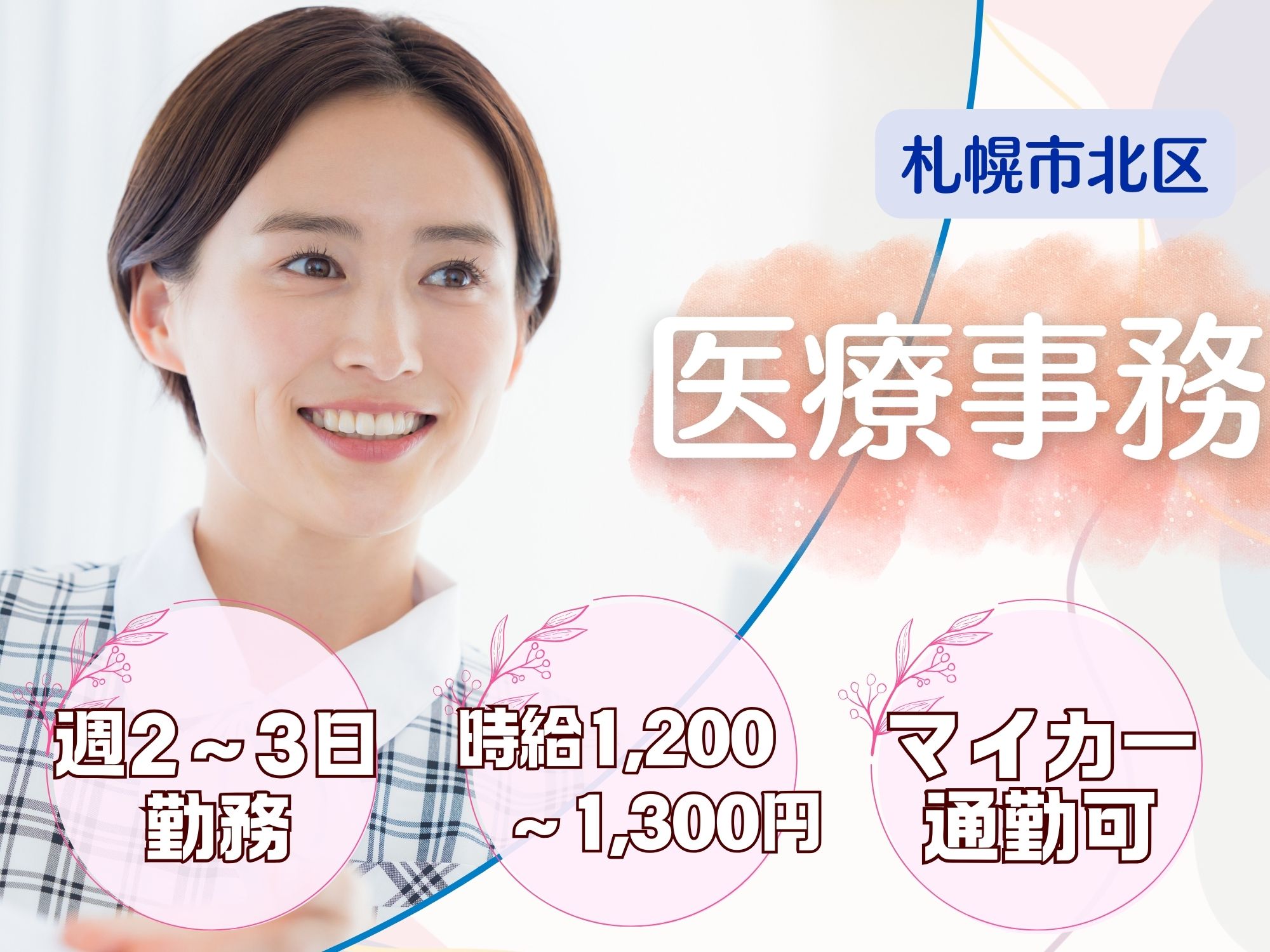 【札幌市北区】経験必須!時給1,200円~時給1,300円/週2~3日勤務/半日勤務のお仕事&日祝固定休み/マイカー通勤可/無料駐車場完備/医療事務/新川ファミリエ内科