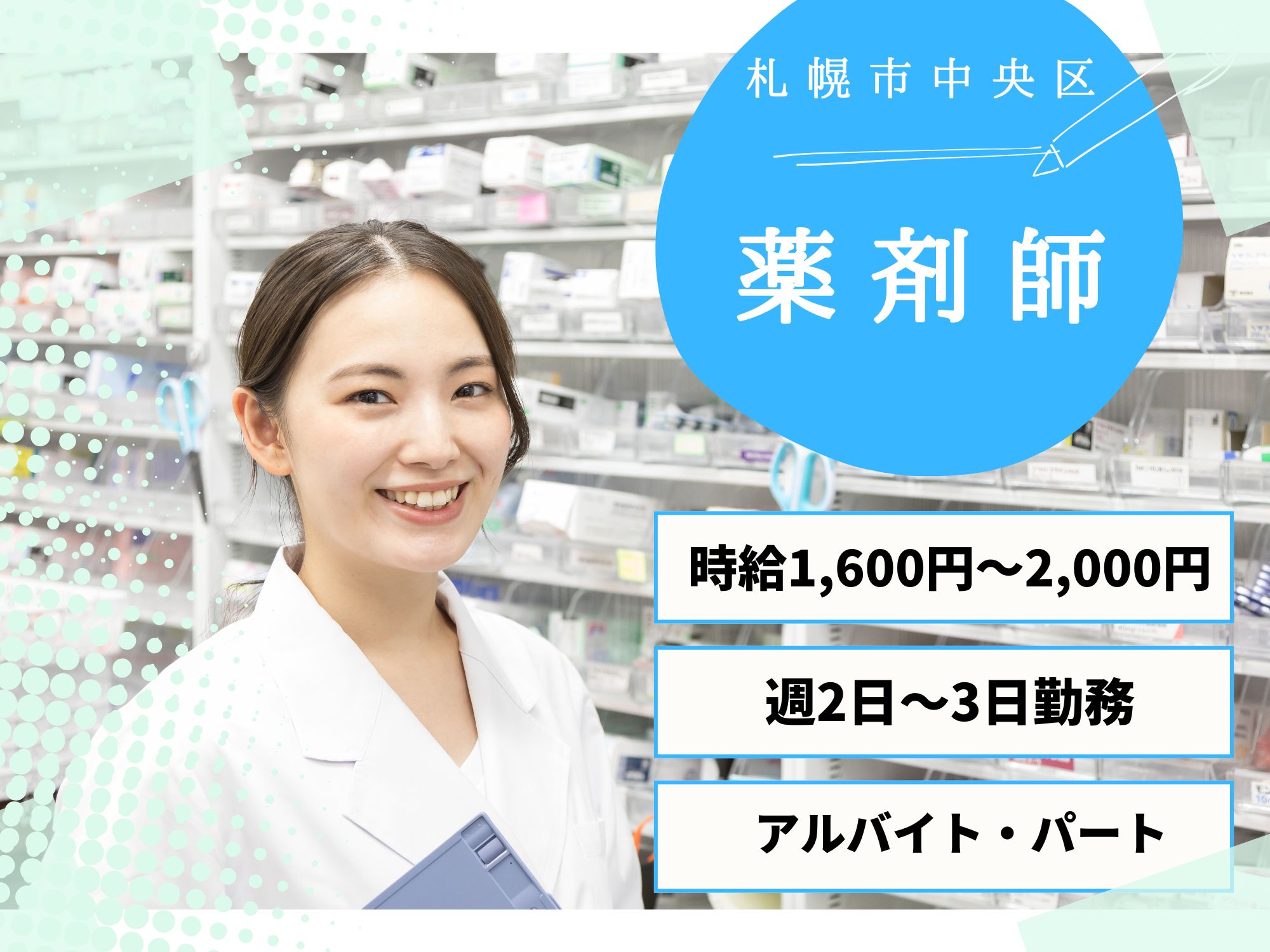 【札幌市中央区】経験と資格を活かす!時給1600円~◎週2~3日で無理なく働ける薬剤師パート募集