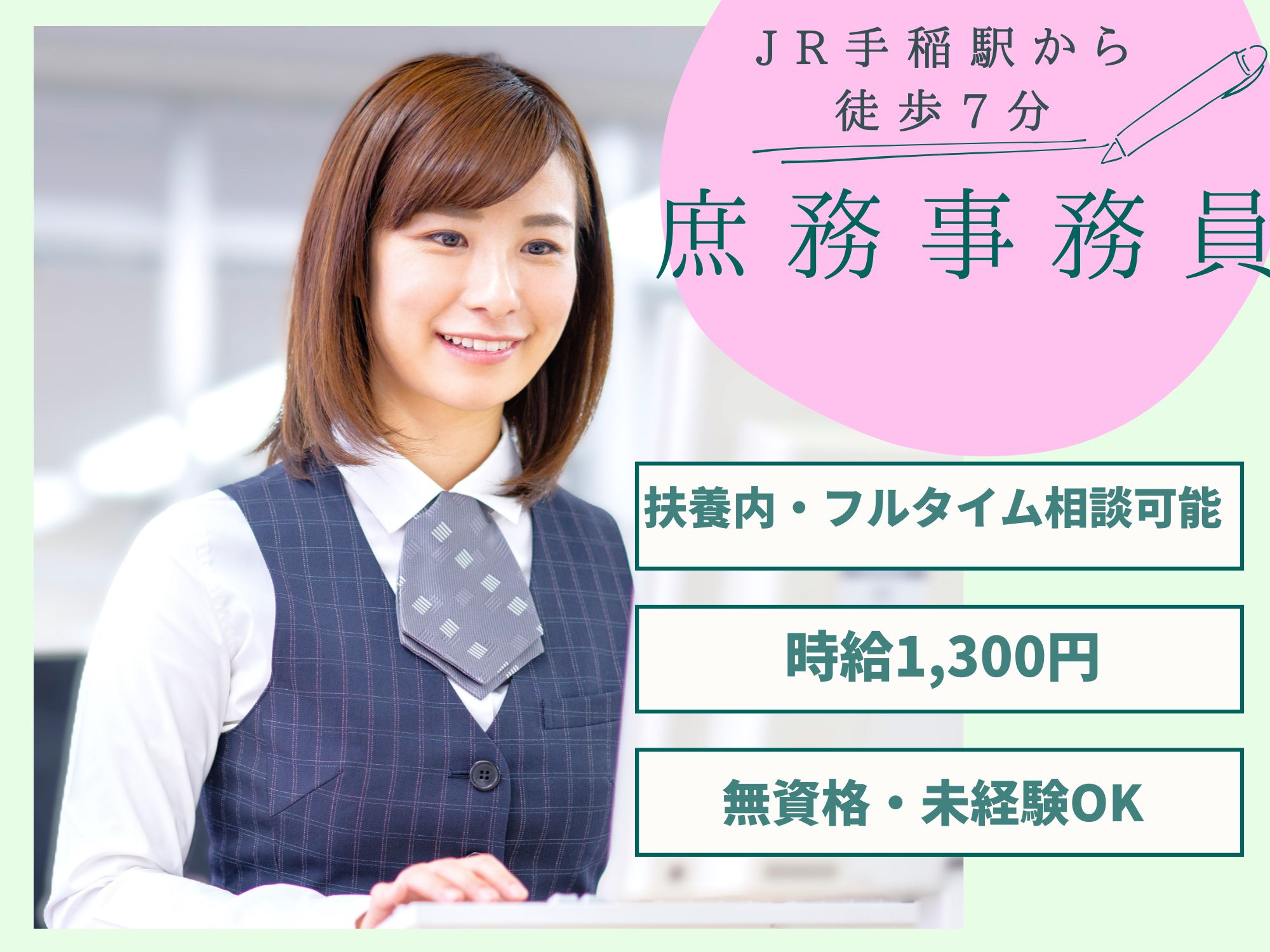 【JR星置駅より徒歩7分】無資格・未経験OK!週2~3日勤務/扶養内、フルタイム勤務など相談可能!/時給1,300円/庶務