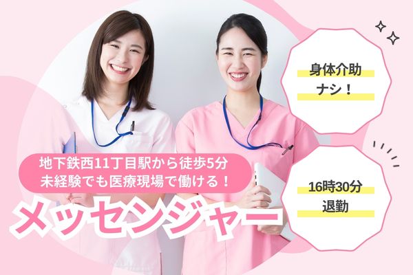 【地下鉄西11丁目駅から徒歩5分】未経験でも安心!患者さんへの直接ケアなし◎月収例 176,400円/時給1,200円/16時30分退勤◎福利厚生充実/医療業界へのデビューにオススメ