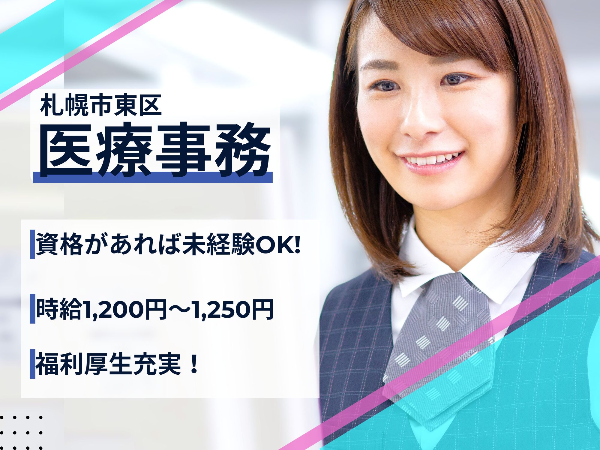 【札幌市東区】時給1,200円~1,250円/月給189,600円~197,500円/資格があれば未経験OK!福利厚生充実/医療事務/東苗穂病院