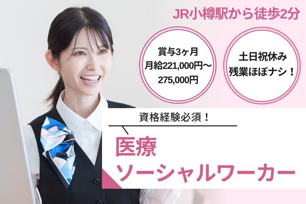 【JR小樽駅から徒歩2分】資格経験必須!月給221,000円~275,000円/賞与3ヶ月/土日祝休み・年間休日124日/残業ほぼナシ!野口病院/医療ソーシャルワーカー(MSW)