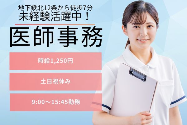 【地下鉄北12条駅徒歩7分】年休126日&土日祝休み◎時給1,250円/15:45までの時短勤務/無資格未経験OK/北海道大学病院/医師事務