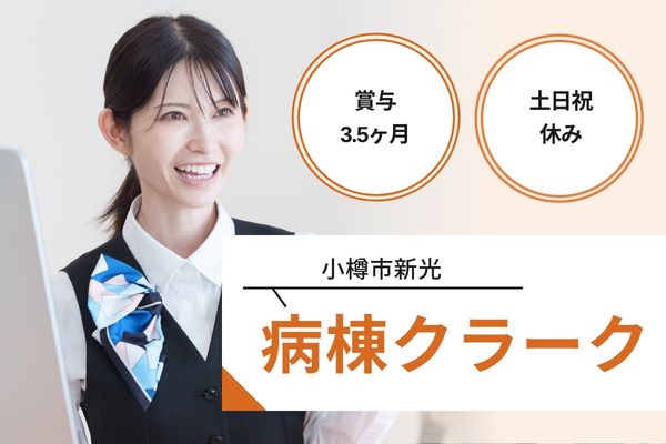【小樽市新光】経験必須!月給165,800円~170,000円/賞与3.5ヶ月/土日祝休み/年間休日120日/医療法人北光会 朝里中央病院/病棟クラーク