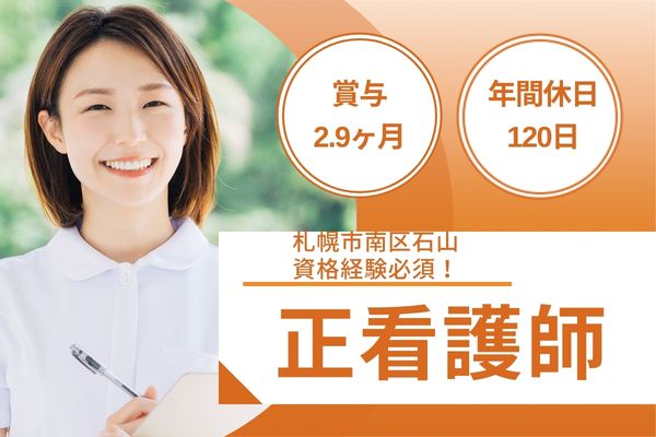 【札幌市南区石山】資格経験必須!月給206,000〜282,000円/夜勤・日勤シフト制/賞与2.9ヶ月/年間休日120日/マイカー通勤可/無料駐車場あり//札幌南病院/正看護師