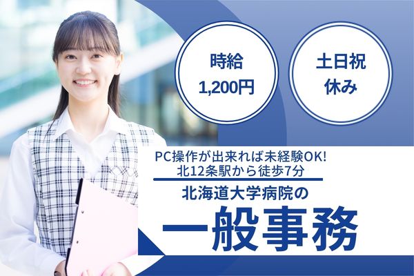 【札幌市北区・北12条駅徒歩7分】パソコン操作が出来れば未経験OK!時給1,200円/土日祝休み/北海道大学病院・一般事務