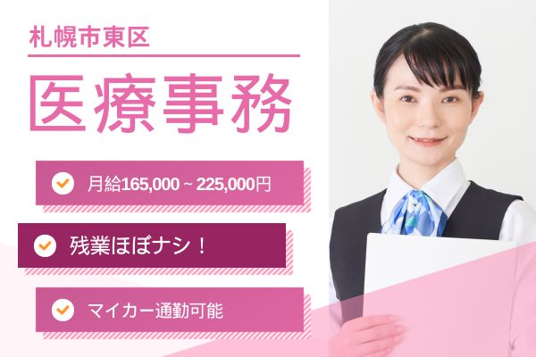 【札幌市東区】経験者募集!月給165,000~225,000円/残業ほぼなし/マイカー通勤可能/無料駐車場あり/さの内科循環器クリニック/医療事務
