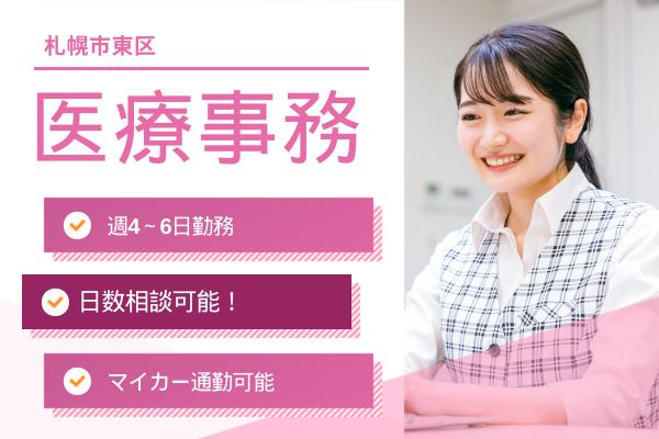 【札幌市東区】経験者募集!時給1,150~1,450円/週4~6日/労働日数相談可能!残業ほぼなし/マイカー通勤可能/無料駐車場あり/さの内科循環器クリニック/医療事務