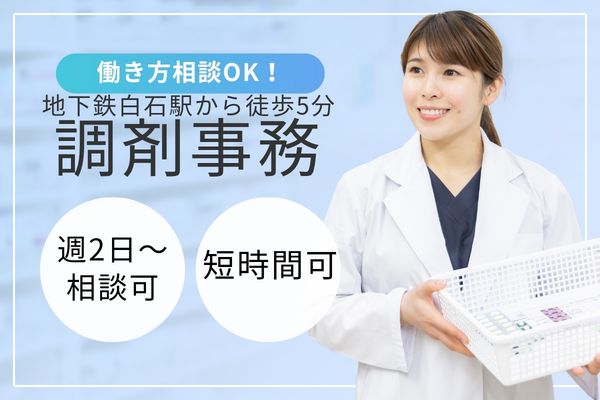 【白石駅徒歩5分】調剤事務経験活かせる◎扶養内&日祝休み|ブランクOK・短時間シフトで家庭とも両立しやすい!