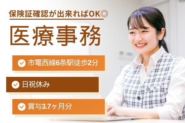 【西線6条駅徒歩2分】保険証確認が出来る方/資格不問/賞与3.7ヵ月分*50代も歓迎の医療事務|残業ほぼなし&日祝休み