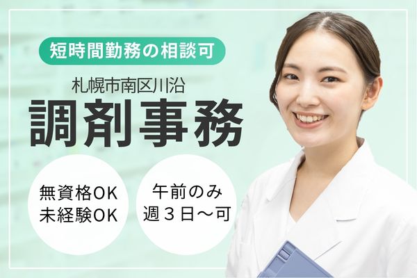 未経験歓迎*午前だけ・週5日*札幌南区の調剤事務パート|水日祝休&車通勤OK