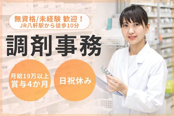 月給19.5万円*新生活を応援*未経験OKの調剤事務/札幌市西区・駅徒歩10分・賞与4ヶ月分あり