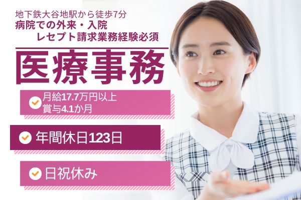 【厚別区・大谷地駅】医療事務経験者歓迎◎年間休日123日&賞与4ヶ月◆マイカー通勤OK×日勤のみ!