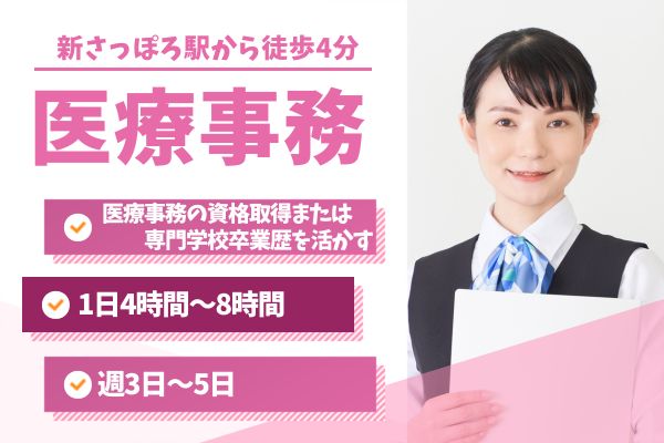 【新札幌駅徒歩4分】残業少なめ◎未経験OK!週3日~◎ライフスタイルに合わせて働ける医療事務♪