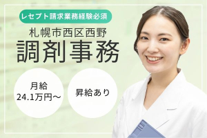 【札幌市中央区/徒歩7分】年間休日122日/調剤事務経験者必見!日祝+週休2日・賞与2.3ヶ月・育休取得実績も充実