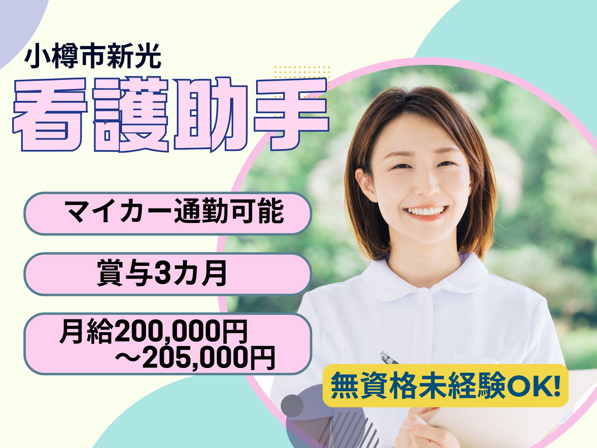 【小樽市新光】無資格未経験OK!賞与3ヶ月/月給200,000円~205,000円/マイカー通勤可能/無料駐車場完備/看護助手/東小樽病院