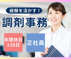 【神戸市兵庫区】調剤事務経験者歓迎♪/残業ほぼなし◎年間休日138日&賞与3ヶ月で安定正社員*子育て世代も活躍中!