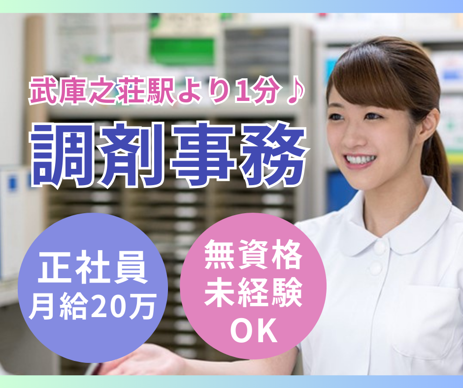 【武庫之荘駅徒歩1分】未経験歓迎★駅チカ調剤事務/日祝休み&賞与ありで安定の正社員へ