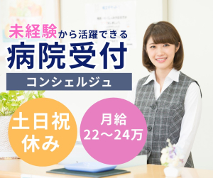 医療センター駅直結*経験・資格不問/総合病院の受付・ご案内スタッフ募集!年間休日120日&土日祝休み◎
