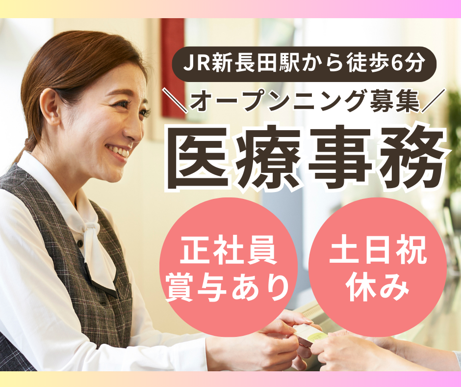 【神戸市長田区】年休120日&土日祝休み*経験活かして正社員に!賞与3ヶ月/新規クリニックの医療事務