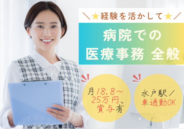 医療法人明翔会 みと南ヶ丘病院の求人/水戸市/医療事務(受付・クラーク)/正社員