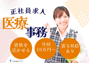 盛岡市中心部・未経験から始められるクリニック医療事務・正社員・日祝休み・賞与3ヶ月
