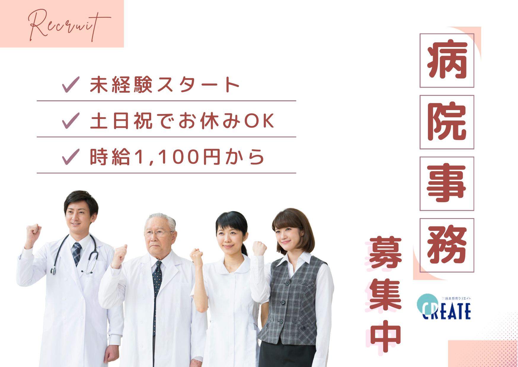 クリエイトを通じて病院事務へキャリアチェンジ