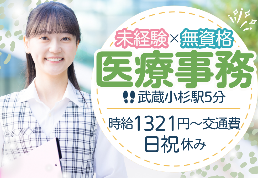 【武蔵小杉駅5分】経験不問!資格不問!*\17時定時×時給1321円~/*社会保険完備|交通費別途支給|大学病院での事務職