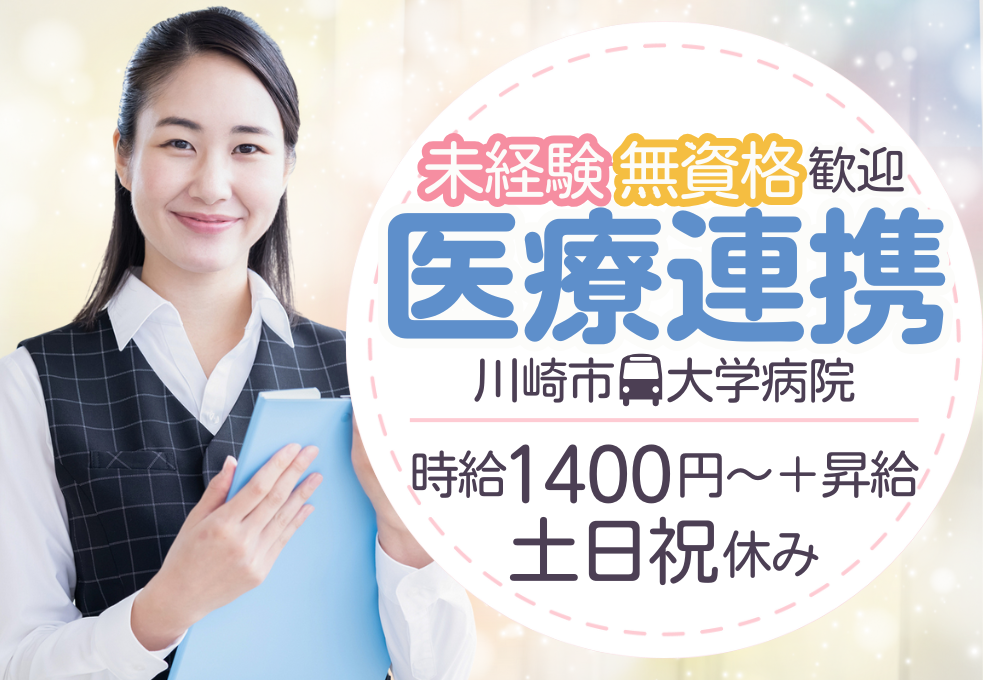 【川崎市/バス】医療連携室スタッフ*\未経験・無資格から歓迎/*17時定時×土日祝休み♪時給1400円~|退職金制度あり◎交通費別途支給|社会保険完備