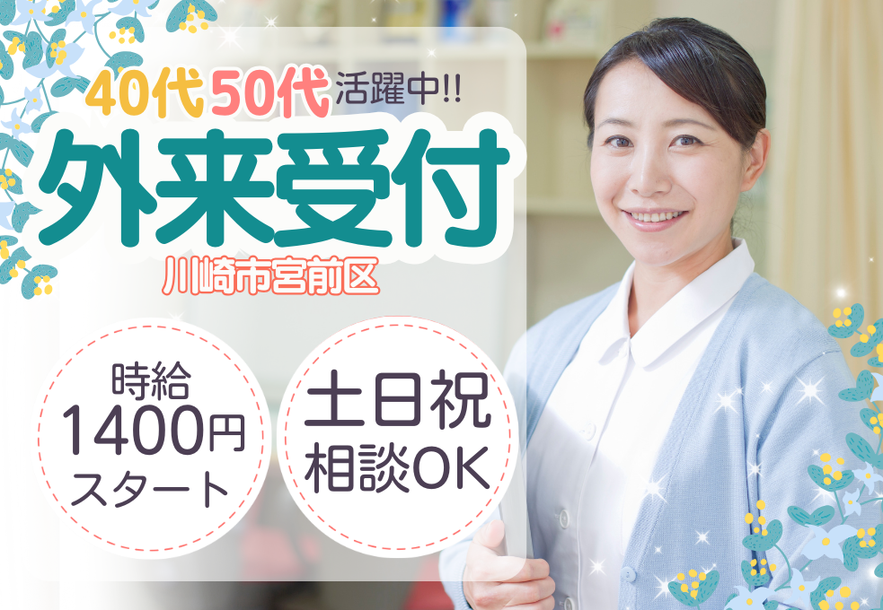 【川崎市/バス】*\外来受付/*経験を活かす◎時給1400円~+交通費別途支給!残業少なめ◎土日祝お休みも相談OK!