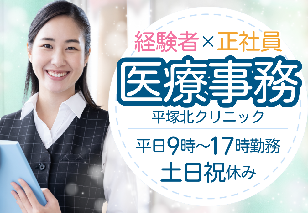 賞与年2回・住宅手当あり◎平塚北クリニックの医療事務★17時定時&残業少なめでプライベートも充実