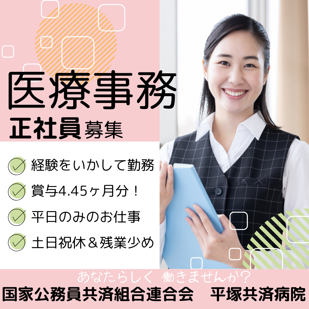 国家公務員共済組合連合会 平塚共済病院の求人/平塚市/医療事務(受付・クラーク)/正社員