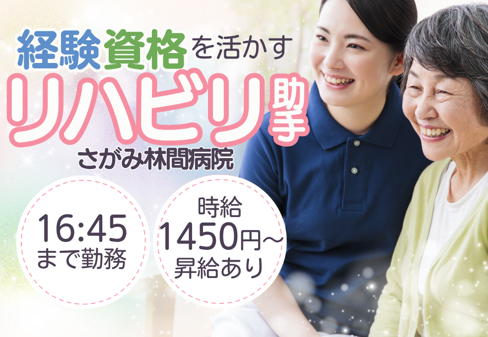 《東林間駅2分》\時給1450円!/【資格・経験者募集】日祝休み|16:45まで勤務×残業少なめ◎|リハビリ科助手の仕事!