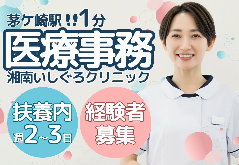 【茅ヶ崎駅1分】扶養内パート・医療事務募集◎経験を活かす!時給1250円~+交通費|週2~3日勤務|日祝休み|福利厚生充実!キレイな広いクリニック♪