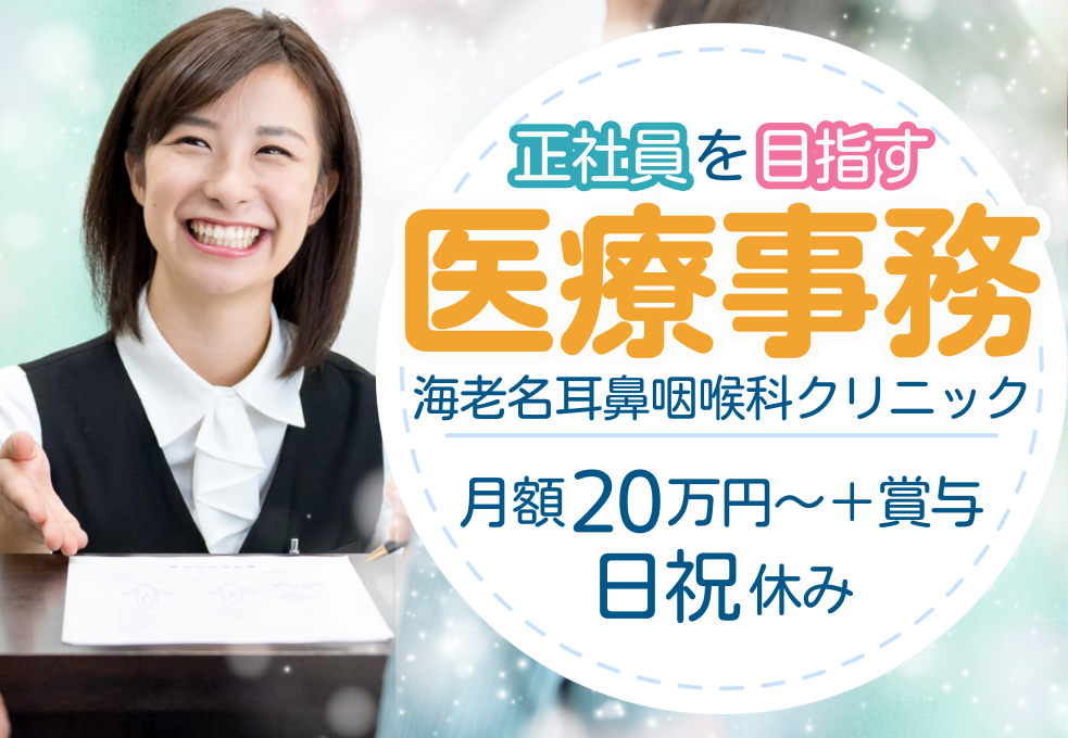 【海老名駅徒歩8分】≪未経験・資格不問≫ブランクOK◎正社員登用あり!賞与年2回★耳鼻咽喉科クリニックで医療事務