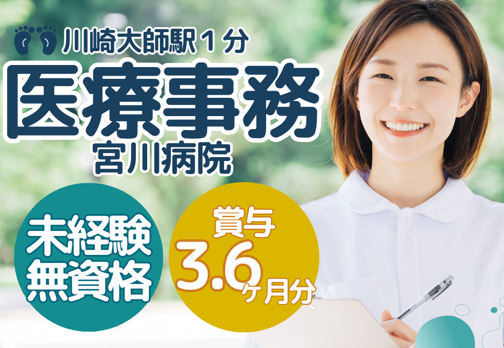 川崎大師駅徒歩5分*未経験から始める医療事務/賞与3.6ヶ月分&充実の福利厚生