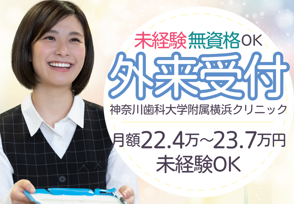 【神奈川歯科大学附属横浜クリニック】直接雇用前提◎未経験・無資格OK|月額22.4~23.7万円|日祝休み◎年間休日120日