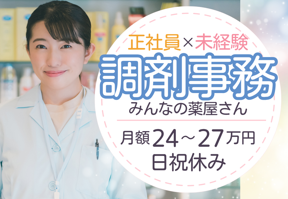 【横浜市港北区】正社員募集*\未経験・無資格OK/*月給19.6万円+賞与4ヶ月分|交通費別途支給◎年間休日126日|調剤薬局事務