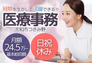 【つきみ野駅】月給24.5万円・経験活かせる小児科医療事務*日祝+平日休みでプライベート充実