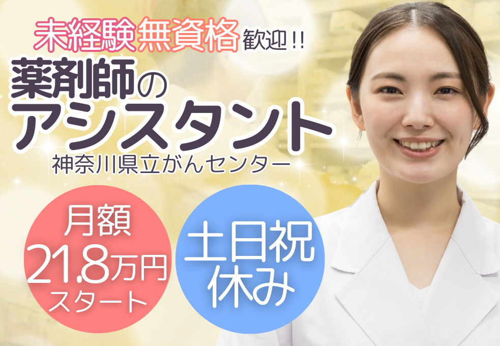 【二俣川駅徒歩】薬剤師のアシスタント業務|~17:15まで・残業少なめ◎土日祝休みで働きやすい♪
