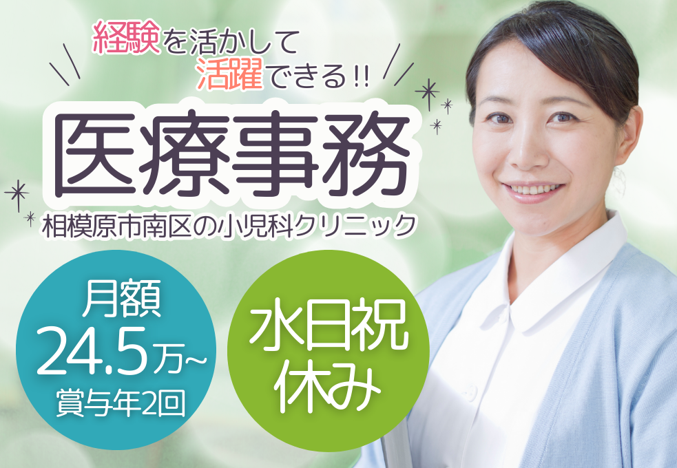 【橋本駅徒歩7分】子育て世代も活躍中!医療事務経験を活かせる★週5日勤務・駅チカ×交通費全額支給|年間休日120日
