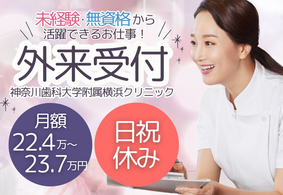 【横浜駅徒歩5分】*\未経験・無資格からはじめる医療事務/*月額22.4万円~|子育て世代も活躍中!日祝休みで長く続けやすい♪
