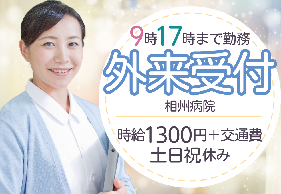 【厚木市*短期】送迎バスあり!マイカー通勤OK◎外来受付募集|9時から17時まで勤務|土日祝お休み|時給1400円~