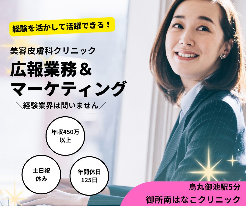 【京都市中京区・御所南はなこクリニック】経験を活かせる広報ポジション/年休125日で働きやすさ◎