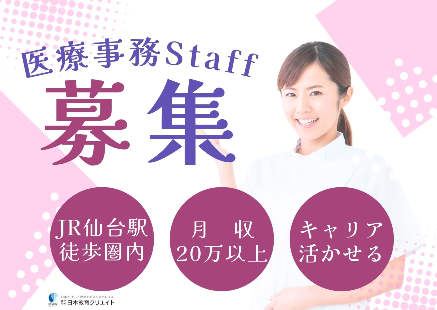教育体制があって安心・駅チカでアクセスラクラク・プライベートと両立OK・賞与がついてより高収入が見込める