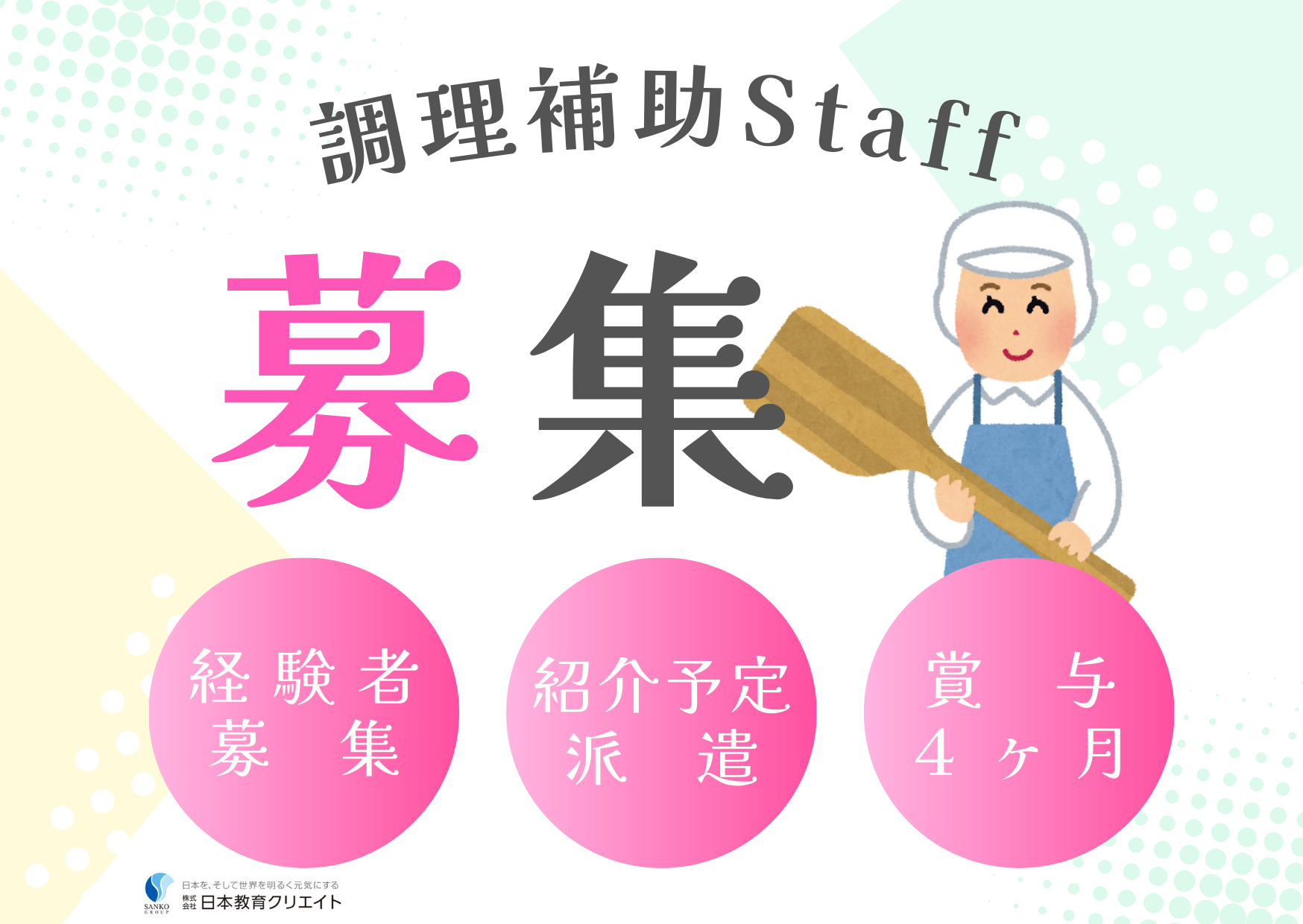 調理の経験があればOK・マイカー通勤OK・残業少なめ・サポート万全